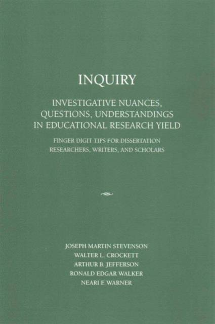 The authors of this book workbook précis or primer are senior professors, dissertation advisors, and seasoned administrators for a research university in the Deep South. Our title INQUIRY reflects the book s aim to help readers with the principles of research scope concerning investigative (examination); nuances (meaning); questions (evoke); in (throughout); research (scientific) yield (return). The book was generated from many discussions over the years about the quality of dissertations and the organizational challenges experienced by doctoral students before, during and after the dissertation prospectus or proposal stage. The content of this book was driven, motivated, and derived from formative feedback given by some of our doctoral students who completed a series of pre-dissertation proposal workshops. We have attempted to address all of their typical inquiries, concerns, challenges and issues in the pre and post dissertation proposal process. We have attempted in our short book to capture these challenges and address them in a very succinct précis by identifying ten basic digits for planning the dissertation proposal process and beyond for the lifelong researcher. However we also spend a great of time making suggestions in the preplanning process prior to the ten step process. We recommend that doctoral students seek out separate readings for some of the fundamental components of traditional qualitative research relative to areas such as varying research designs, biography, case study, ethnography, grounded theory, phenomenology, and other elements of conventional quantitative research like instrumentation, sampling, variables, testing, and other statistics. We call our digits finger tip because the writing and word processing of the dissertation are the manifestation of work from the finger tips of the human hand based on the thinking constructs generated from the mind. Therefore, research derived from the process of dissertation thinking, engaging and writing is the result of cognitive and relational symmetry between the human mind and the human hand. An exercise we have used with our students involves each student putting on latex gloves and writing the chapter initials and numbered digits at the bottom of each finger. This allows the student to look at all finger digits that represent the all sections of the dissertation proposal, while typing about the dissertation on a computer key board. Given this profound psychological, physiological and metaphorical synergy, mind-to-hand coordination, we have chosen each finger of the hand to symbolize each step in our précis. The left and right hands each have five digits, thumb, index, middle, ring, and little. The scientific designation for each, the thumb, index, middle, ring and little fingers are the 1st, 2nd, 3rd, 4th, and 5th. The final dissertation has five chapters and five finger digits from the hand can intersect the psychological, physiological and metaphorical dimensions. After a comprehensive introduction, our book chapters are organized in a way to engage students of the dissertation process from looking at their hands beginning with the left thumb as the first digit to symbolize the stage of thought or idea provocation; the second left index digit as the literature review; the third left middle digit as the theoretical framework; the fourth left ring digit as the research questions; and the fifth left little digit as the hypothesis stage (or step). The right hand fingers represent the remaining key five chapters. The right thumb symbolizing research design; the right index for instrumentation; the right middle for data collection/coding; the right middle for data analysis; and the right little for data findings.