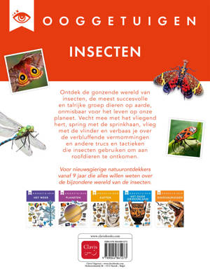 Ontdek de gonzende wereld van insecten, de meest succesvolle en talrijke groep dieren op aarde, onmisbaar voor het leven op onze planeet. Vecht mee met het vliegend hert, spring met de sprinkhaan, vlieg met de vlinder en verbaas je over de verbluffende vermommingen en andere trucs en tactieken die insecten gebruiken om aan roofdieren te ontkomen. Voor nieuwsgierige natuurontdekkers vanaf 9 jaar die alles willen weten over de bijzondere wereld van de insecten.