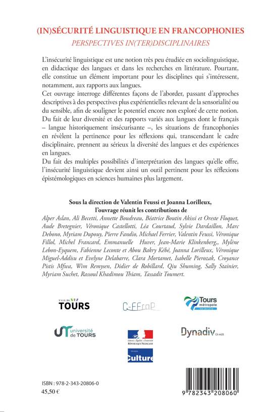 L'insécurité linguistique est une notion très peu étudiée en sociolinguistique, en didactique des langues et dans les recherches en littérature. Pourtant, elle constitue un élément important pour les disciplines qui s'intéressent, notamment, aux rapports aux langues. Cet ouvrage interroge différentes façons de l'aborder afin de souligner le potentiel encore non exploré de cette notion. Du fait de leur diversité et des rapports variés aux langues, les situations de francophonies en révèlent la pertinence pour les réflexions qui, transcendant le cadre disciplinaire, prennent au sérieux la diversité des langues et des expériences en langues.