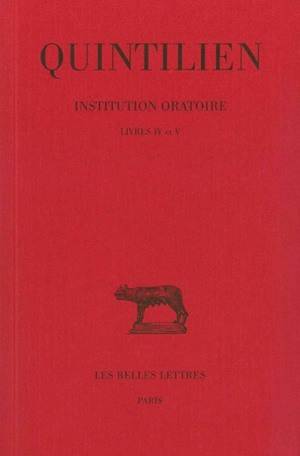 L'Institution oratoire (De institutione oratoria) rassemble l'expérience de Quintilien sur l'éloquence. Il traite de l'instruction élémentaire, de l'inspiration et de la manière d'agencer la matière, de l'exprimer et de la mémoriser, de l'exposé, de l'orateur et du discours.