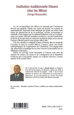 La vie sociopolitique des Mbosi est dominée par l'institution Otwere qui apparaît comme une vision du monde, un système de représentations, disposant d'une idéologie qui guide son action dans toutes les dimensions de la vie politique, sociale, économique et culturelle. Après une étude anthropologique de l'organisation de l'institution suit une observation scientifique de ses rites à travers la description de ses différentes cérémonies, et une analyse de son déclin depuis les années 1950.