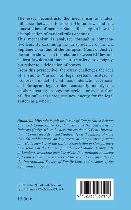 From this perspective, the essay challenges the idea of a simple « fusion » of legal systems : instead, it proposes a model of continuous interaction. National and European legal orders constantly modify one another creating an ongoing cycle - or even a form of « fission » - that produces new energy for the legal system as a whole.