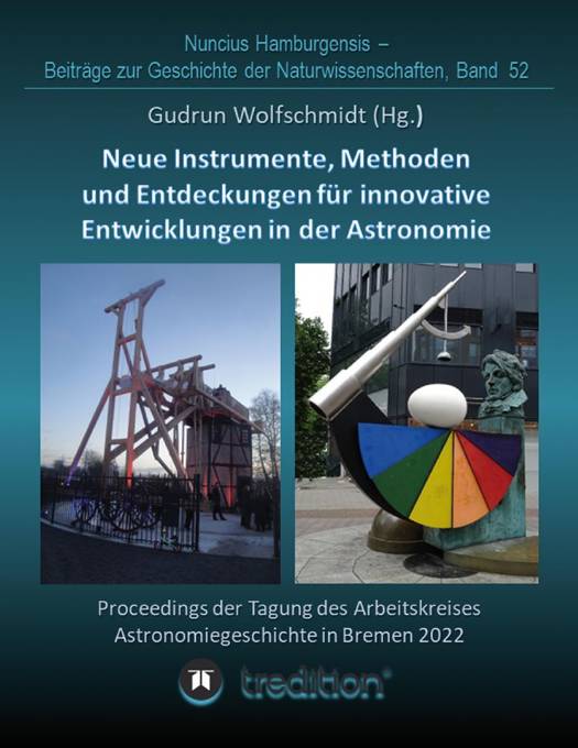 Diese Monographie bietet Raum, den Innovationen in der Geschichte der Astronomie gebündelt nachzugehen, seien es instrumentelle Entwicklungen, neue Meß- oder Auswertemethoden, neue Weltbilder oder revolutionäre Entwicklungen und spektakuläre Entdeckungen, und damit Material für weitere wissenschaftstheoretische und philosophische Überlegungen bereitzustellen. Das einführende Kapitel von Gudrun Wolfschmidt präsentiert exemplarisch zahlreiche Beispiele und Highlights zu den verschiedenen Themen. Die nächsten beiden Artikel widmen sich der Bremer und Lilienthaler Geschichte des Tagungsortes. Hans-Joachim Leue stellt das grösste Fernrohr des Kontinents, das berühmte Lilienthaler 27-füßige Spiegelteleskop (1793) von Johann Hieronymus Schroeter (1745-1816) vor. Er thematisiert dabei nicht nur den eindrucksvollen Nachbau (2015), sondern die ganze Entwicklung der Lilienthaler Sternwarte einschliesslich der hervorragenden instrumentellen Ausstattung. Katrin Cura berichtet über die Innovativen Ideen von Wilhelm Olbers Focke (1834-1922), Arzt und Botaniker, Urenkel des Astronomen und Arztes Wilhelm Olbers. W. O. Focke machte Ernst Haeckel (1834-1919) auf die Evolutionstheorie Charles Darwins aufmerksam und zitierte 1881 Gregor Mendels Werk über die Vererbung, seine Erbsenforschung, die damit ins Bewusstsein der Biologen um 1900 kam.Es folgen drei Beiträge zu Modellen des Kosmos. Astrid Wokke untersucht geometrische Muster im Schmuck der nordischen Bronzezeit und findet Kreissysteme, die eine projizierte Himmelskugel bilden, Grundlage des Astrolabiums, und Hinweise auf astronomisches Wissen - basierend auf den Ideen von Dechend & Santillana: Hamlet's Mill (1969). Karsten Markus-Schnabel berichtet kurz über die Sternkammer in Lübeck mit einem einzigartigen Planetariumsprojektor (1931). Romke Schievink stellt das älteste funktionierende optische Planetarium Zeiss Modell 1b vor, das 1934 in Den Haag installiert wurde; das Instrument wurde nach einem Brand 1976 von aussen restauriert und projiziert heute in Bruchhausen-Vilsen eindrucksvoll den Sternhimmel mit Milchstrasse wie vor 100 Jahren das Wunder von Jena.Im folgenden werden fünf Beiträge zur Astronomiegeschichte vom Mittelalter bis zum Beginn der Astrophysik behandelt. Regina Umland gibt Einblick in die Fortschritte in der Astronomie durch indisch-arabische Ziffern und das Stellenwertsystem. Michael Hiermanseder gibt Drei Briefe von Johann Jakob von Marinoni (1676-1755) wieder, die seine Sternwarte und seine innovativen Instrumente genau beschreiben. Björn Kunzmann informiert über Veränderliche Sterne als Meilensteine in der Geschichte der Astrophysik mit den Beispielen Mira, Algol und eta Carinae. Dietrich Lemke präsentiert Johannes Hartmann (1865-1936) als Entdecker der Interstellaren Materie. Kalevi Mattila zeigt die Reaktionen auf Johannes Hartmanns Entdeckung - Zweifler, Konkurrenten und Vollender.Moderne Entwicklungen der Astrophysik werden in den letzten drei Artikeln geschildert. Rita Meyer-Spasche stellt die Bedeutung von Eberhard Hopf (1902-1983) für die Entwicklung der mathematischen Astronomie und Astrophysik vor. Carsten Busch berichtet eindrucksvoll Wie Schwarze Löcher ihre Schwärze verloren - Zur Entstehung der Thermodynamik Schwarzer Löcher. Susanne M. Hoffmann widmet sich dem aktuellen interessanten Thema Innovation "EHT" - Geschichte der Instrumente, Methoden, Entdeckung(en). Im Anhang wird - ausser dem Tagungsprogramm - die Astronomie und ihre bemerkenswerte Geschichte in Bremen und Lilienthal überblicksartig dargestellt (mit Links und Adressen) - ein Astro Walk, der zum selbst erkunden einlädt.