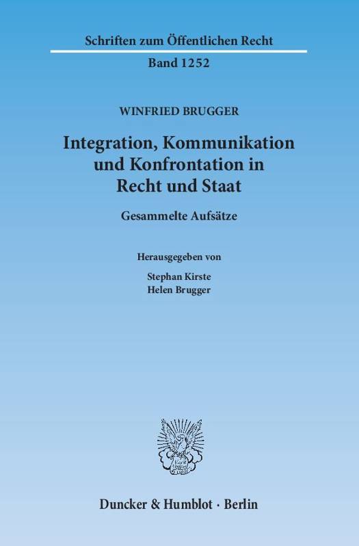 Der Band enthält Untersuchungen zu zentralen Fragen des liberal-kommunitaristischen Rechtsstaats und legt zugleich Zeugnis vom Facettenreichtum der Arbeiten des 2010 verstorbenen Heidelberger Rechtsphilosophen und Staatsrechtlers Winfried Brugger ab. Orientierung für die Integration rechtlicher Probleme geben Menschenwürde, Menschenrechte und Gemeinwohl. Liberalität zeigt sich in der Offenhaltung des kommunikativen Prozesses gerade auch für herausfordernde und provokative Auffassungen. Kontrovers bleiben Fragen von Freiheit und Sicherheit im Staat, von der Nähe oder Distanz von Staat und Religion und nicht zuletzt die Frage des Folterverbots. Indem Brugger in Titel und Aufbau dieser Aufsatzsammlung nicht den dialektischen Dreischritt von ursprünglicher Einheit in der Integration, Antithese in der Konfrontation und Synthese in der Kommunikation gewählt hat, wird deutlich, dass er seine Antworten nicht als abschließend, sondern als Beiträge zur Rationalität der Auseinandersetzung verstanden wissen wollte. In diesem Sinne ist dieser Band Bruggers Vermächtnis.