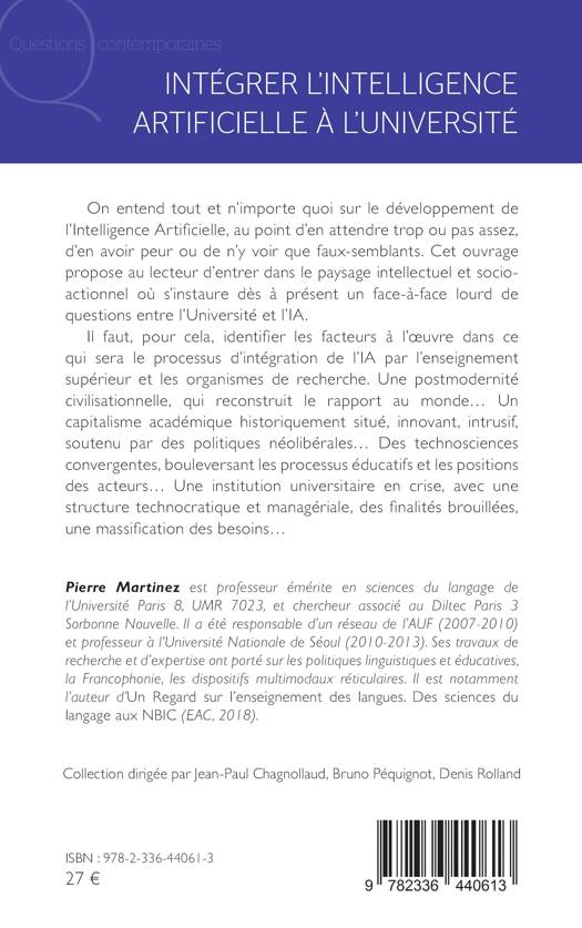 On entend tout et n’importe quoi sur le développement de l’Intelligence Artificielle, au point d’en attendre trop ou pas assez, d’en avoir peur ou de n’y voir que faux-semblants. Cet ouvrage propose au lecteur d’entrer dans le paysage intellectuel et socio-actionnel où s’instaure dès à présent un face-à-face lourd de questions entre l’Université et l’IA. Il faut, pour cela, identifier les facteurs à l’œuvre dans ce qui sera le processus d’intégration de l’IA par l’enseignement supérieur et les organismes de recherche. Une postmodernité civilisationnelle, qui reconstruit le rapport au monde… Un capitalisme académique historiquement situé, innovant, intrusif, soutenu par des politiques néolibérales… Des technosciences convergentes, bouleversant les processus éducatifs et les positions des acteurs… Une institution universitaire en crise, avec une structure technocratique et managériale, des finalités brouillées, une massification des besoins…