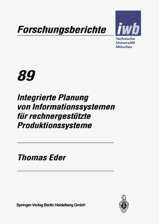 Die vorliegende Dissertation entstand neben meiner Tätigkeit als wissenschaftlicher Mitarbeiter und als Abteilungsleiter am Institut für Werkzeugmaschinen und Betriebs- wissenschaften (iwb) der Technischen Universität München. Herrn Prof. Dr. -Ing. Joachim Milberg, unter dessen Leitung diese Dissertation entstanden ist, gilt mein besonderer Dank für die wohlwollende Förderung und großzügige Unterstützung meiner Arbeit. Herrn Prof. Dr. -Ing. Dieter Spath, dem Leiter des Instituts für Werkzeugmaschinen und Betriebstechnik der Universität Karlsruhe, danke ich sehr herzlich für sein Interesse an der Arbeit und rür die Übernahme des Koreferates. Allen Mitarbeitern des Instituts und allen Studenten, die mich bei der Erstellung meiner Arbeit unterstützt haben, mächte ich meinen tiefen Dank aussprechen. Schließlich gilt mein Dank auch meiner Familie und meinen Freunden, deren Motivation, Engagement und Vertrauen wesentlich zum Gelingen meiner Arbeit beigetragen haben. München, im Oktober 1994 Thomas Eder Inhaltsverzeichnis Inhaltsverzeichnis 1 Einleitung . . . . . . . . . . . . . . . . . . . . . . . . . . . . . . . . . . . . . . . . . . . . . . . . . . . . . . . . . . . . . . . . . . . . . . . . . . . . . . . . . . . . . . . . . . . . -. . . . . . . . . . . . 1 1. 1 Ausgangssituation . . . . . . . . . . . . . . . . . . . . . . . . . . . . . . . . . . . . . . . . . . . . . . . . . . . . . . . . . . . . . . . . . . . . . . . . . . . . . . . . . . . . 1 1. 2 Zielsetzung . . . . . . . . . . . . . . . . . . . . . . . . . . . . . . . . . . . . . . . . . . . . . . . . . . . . . . . . . . . . . . . . . . . . . . . . . . . . . . . . . . . . . . . . . . . . . . . 3 1. 3 Vorgehen . . . . . . . . . . . . . . . . . . . . . . . . . . . . . . . . . . . . . . . . . . . . .. . . . . . . . . . . . . . . . . . . . . . . . . . . . . . . . . . . . . . . . . . . . . . . . . . . . . 4 2 Rechnerunterstützung in Produktionssystemen . . . . . . . . . . . . . . . . . . . . . . . . . . . . . . . . . . . . . . . . . . 7 2. 1 Überblick . . . . . . . . . . . . . . . . . . . . . . . . . . . . . . . . . . . . . . . . . . . . . . . . . . . . . . . . . . . . . . . . . . . . . . . . . . . . . . . . . . . . . . . . . . . . . . . . . . 7 2. 2 Rechnerunterstützte Produktionssysteme . . . . . . . . . . . . . . . . . . . . . . . . . . . . . . . . . . . . . . . . . . . . . . . . 7 2. 2. 1 Funktionen und Aufbau eines Produktionssystems . . . . . . . . . . . . . . . . . . . . . 7 2. 2. 2 Organisationsformen rechnergestützter Produktionssysteme . . . . . . 8 2. 3 Informationstechnik in Produktionssystemen . . . . . . . . . . . . . . . . . . . . . . . . . . . . . . . . . . . . . . . . 12 2. 3. 1 Überblick . . . . . . . . . . . . . . . . . . . . . . . . . . . . . . . . . . . . . . . . . . . . . . . . . . . . . . . . . . . . . . . . . . . . . . . . . . . . . . . . . . . 12 2. 3. 2 Aufgaben des Informationssystems . . . . . . . . . . . . . . . . . . . . . . . . . . . . . . . . . . . . . . . . . . . 13 2. 3. 3 Randbedingungen des Informationssystems . . . . . . . . . . . . . . . . . . . . . . . . . . . . . . 14 2. 3. 4 CAM-Systeme . . . . . . . . . . . . . . . . . . . . . . . . . . . . . . . . . . . . . . . . . . . . . . . . . . . . . . . . . . . . . . . . . . . . . . . . . . . 16 2. 3. 5 EDV-Komponenten . . . . . . . . . . . . . . . . . . . . . . . . . . . . . . . . . . . . . . . . . . . . . . . . . . . . . . . . . . . . . . . . . . . 18 2. 4 Zusammenfassung . . . . . . . . . . . . . . . . . . . . . . . . . . . . . . . . . . . . . . . . . . . . . . . . . . . . . .. . . . . . . . . . . . . . . . . . . . . . . . . . . . 22 3 Planung von Produktionssystemen und ihrer Rechnerunterstützung . . . . 23 3. 1 Überblick . . . . . . . . . . . . . . . . . . . . . . . . . . . . . . . . . . . . . . . . . . . . . . . . . . . . . . . . . . . . . . . . . . . . . . . . . . . . . . . . . . . . . . . . . . . . . . . . 23 3. 2 Planung von Produktionssystemen . . . . . . . . . . . . . . . . . . . . . . . . . . . . . . . . . . . . . . . . . . . . . . . . . . . . . . . . 23 3. 2. 1 Überblick . . . . . . . . . . . . . . . . . . . . . . . . . . . . . . . . . . . . . . . . . . . . . . . . . . . . . . . . . . . . . . . . . . . . . . . . . . . . . . . . . . .