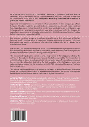 Este volumen constituye un aporte al análisis crítico del impacto de la inteligencia artificial en la justicia penal, y pone de relieve la importancia de desarrollar marcos normativos y principios orientadores que garanticen el respeto a los derechos fundamentales en el contexto de la transformación digital.