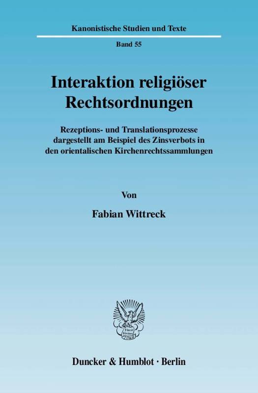Konkreter Untersuchungsgegenstand sind die Regeln zum Zins- oder Wucherverbot, die hier für das orientalische Kirchenrecht erstmals umfassend und im Zusammenhang dargestellt und analysiert werden. An ihnen läßt sich nachweisen, wie rechtliche Regelungskonzepte, Begründungsansätze und auch Ausnahmeregelungen über Sprach- und Religionsgrenzen hinweg rezipiert werden. Zugleich wird deutlich, daß dieser Austausch zwischen den religiösen Rechten auf die wissenschaftlich-literarische Ebene beschränkt bleibt, da zahlreiche Rechtstexte gar nicht den Anspruch erheben, die Rechtspraxis der orientalischen Christen zu beeinflussen.
