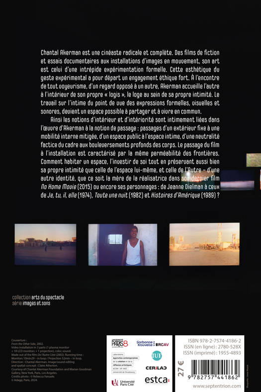 Chantal Akerman est une cinéaste radicale et complète. Des films de fiction et essais documentaires aux installations d’images en mouvement, son art est celui d’une intrépide expérimentation formelle. Cette esthétique du geste expérimental a pour départ un engagement éthique fort. À l’encontre de tout voyeurisme, d’un regard opposé à un autre, Akerman accueille l’autre à l’intérieur de son propre « logis », le loge au sein de sa propre intimité. Le travail sur l’intime du point de vue des expressions formelles, visuelles et sonores, devient un espace possible à partager et à vivre en commun.