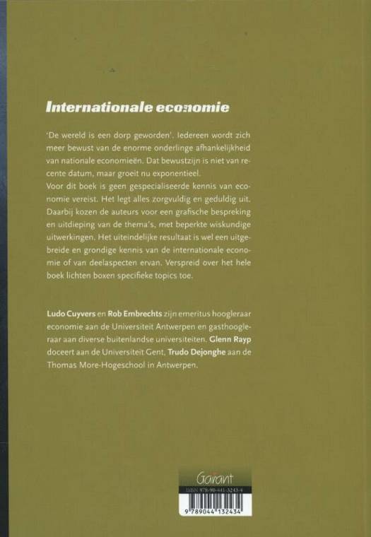 ‘De wereld is een dorp geworden’. Iedereen wordt zich meer bewust van de enorme onderlinge afhankelijkheid van nationale economieën. Dat bewustzijn is niet van recente datum, maar groeit nu exponentieel. Voor dit boek is geen gespecialiseerde kennis van economie vereist. Het legt alles zorgvuldig en geduldig uit. Daarbij kozen de auteurs voor een grafische bespreking en uitdieping van de thema’s, met beperkte wiskundige uitwerkingen. Het uiteindelijke resultaat is wel een uitgebreide en grondige kennis van de internationale economie of van deelaspecten ervan. Verspreid over het hele boek lichten boxen specifieke topics toe.