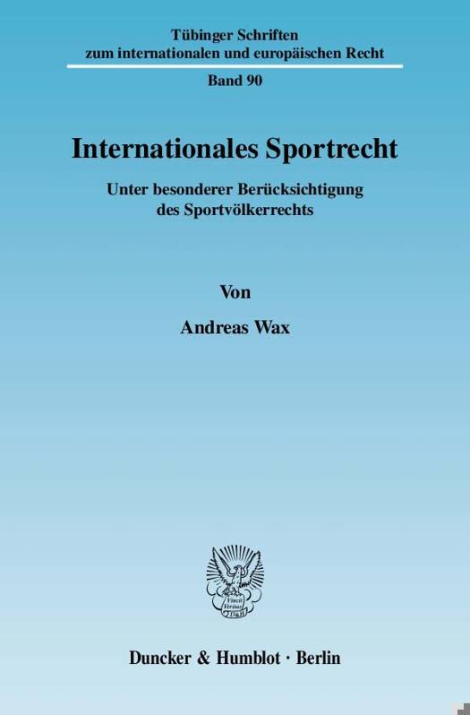 Andreas Wax liefert mit der vorliegenden Arbeit einen weiteren Baustein zur Erschließung des internationalen Sportrechts. Zu diesem Zweck zeigt er die lange Geschichte dieses "Querschnittsbereichs" auf und unterzieht seinen Begriff einem Neuverständnis. Sodann erfolgt eine Darstellung der Bestandteile des internationalen Sportrechts einschließlich ihrer wesentlichen Inhalte, wobei auch die "vergessene" Disziplin des Sportvölkerrechts Berücksichtigung findet. Ferner setzt sich Wax intensiv mit dem "Dilemma" des internationalen Sportrechts - der Anwendung unterschiedlichen nationalen Rechts auf vergleichbare Sachverhalte - auseinander: Vorhandene Lösungsansätze werden kritisch analysiert und weiterentwickelt. Mit dem Ziel, der sportrechtlichen Praxis einen Nutzen zu bereiten, unternimmt der Autor schließlich den Versuch, mit Hilfe des Sportvölkerrechts einen Beitrag zur Beseitigung dieses "Dilemmas" zu leisten.