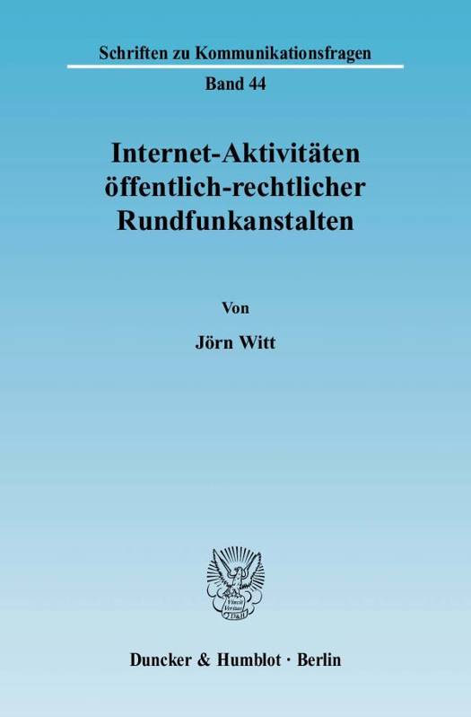 Jörn Witt führt zunächst kurz in die wesentlichen technischen Rahmenbedingungen ein, um sodann das einfache Recht, das deutsche Verfassungsrecht sowie das europäische Regelungsregime als Maßstab an öffentlich-rechtliche Online-Aktivitäten anzulegen. Schwerpunkte sind dabei insbesondere die Zuordnung zum Funktionsauftrag des öffentlich-rechtlichen Rundfunks sowie auf europarechtlicher Ebene die Prüfung der Vereinbarkeit mit dem Beihilferegime sowie der Dienstleistungsfreiheit. Der Verfasser macht dabei deutlich, dass den öffentlich-rechtlichen Rundfunkanstalten das Internet als Betätigungsfeld offen stehen muss, gleichzeitig aber Grenzen aus der besonderen Rolle des öffentlich-rechtlichen Rundfunks erwachsen.