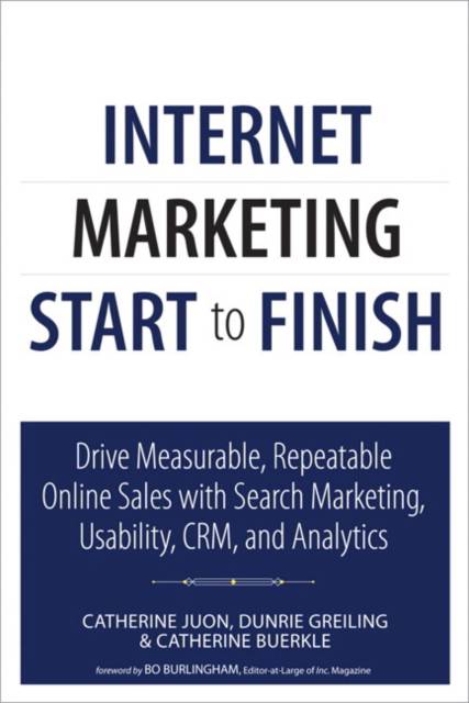 Internet Marketing Start to Finish A breakthrough system for attracting more customers on the Internet Internet marketing is the fastest, most efficient way to attract profitable new customers--if you run it strategically and systematically. This book shows you how. You'll discover how to integrate marketing, sales, and operations functions to work together far more effectively, capture the right real-time data for decision-making, and apply it to drive dramatic improvements in performance. Drawing on extensive in-the-trenches experience, the authors help you implement a more iterative, measurable, and repeatable approach to Internet marketing, deliver better-qualified leads, build an online sales engine to track and improve every customer relationship...and, above all, grow profits! You'll Learn How To: - Craft flexible strategies that can quickly learn from experience - Eliminate "silos" that prevent effective measurement and execution - Overcome obstacles ranging from culture to processes to individual behavior - Build a powerful online sales engine to track customers through the entire relationship - Avoid dangerous data and weed out junk leads - Integrate web KPIs into business decision-making - Link web to lead to CRM analysis - Redefine messages to respond to your key audiences' personas - Architect and design sites to improve user experience and conversion - Write highly findable content, and then make it even more visible - Start a feedback loop for continually optimizing both tactics and strategy - Globalize Internet marketing for diverse languages and cultures - Translate your performance into boardroom-ready reports CATHERINE JUON, Co-Founder & Catalyst of Pure Visibility, has worked in the Internet space for nearly 20 years. She has extensive experience helping companies develop integrated online marketing strategies that leverage online advertising, search engine marketing, and social media. DUNRIE ALLISON GREILING, Director of Happiness at Pure Visibility, works with analysts to derive actionable recommendations from complex web data and develop strategic Internet marketing plans. She has more than a decade of web content and project-management experience. CATHERINE BUERKLE has 18+ years of experience in usability design, web-based media, technical communication, project management, and marketing. She founded ArborComm, Inc., and co-founded the Digital Design Institute of Michigan. ISBN-13: 978-0-7897-4789-1 ISBN-10: 0-7897-4789-8