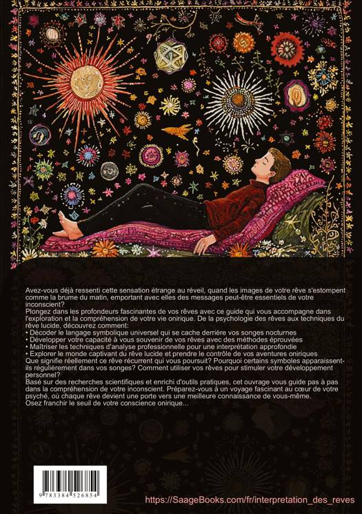 Découvrez une approche approfondie de l'interprétation des rêves avec ce guide détaillé qui vous accompagne dans l'exploration de votre monde onirique.Ce livre sur les rêves s'articule autour de cinq axes principaux :1. Les fondements de l'interprétation des rêvesExploration des processus psychologiques du rêve, techniques pour améliorer la mémorisation des rêves et méthodologie scientifique d'analyse. Apprenez à tenir un journal de rêves efficace et à développer des rituels favorisant le souvenir.2. La compréhension des symboles oniriquesDécouverte du langage universel des symboles, étude des archétypes et de leur signification culturelle. Analyse détaillée des différentes catégories de symboles : éléments naturels, objets et créatures.3. L'analyse professionnelle des rêvesPrésentation des approches psychologiques, des techniques d'interprétation et des applications thérapeutiques. Développement de la conscience de soi et résolution des conflits intérieurs.4. Le rêve éveilléInitiation aux techniques du rêve lucide, exercices de visualisation et méthodes de contrôle onirique. Apprentissage des tests de réalité et des techniques de stabilisation des rêves.5. Le travail pratique sur les rêvesOutils pour l'auto-analyse, reconnaissance des schémas récurrents et intégration des enseignements dans la vie quotidienne.Enrichi de graphiques et de données statistiques, ce livre des rêves offre une méthodologie structurée pour l'analyse des rêves et le développement de la conscience onirique. Une ressource précieuse pour toute personne souhaitant approfondir sa compréhension du langage des rêves.Ce livre a été créé en utilisant des technologies innovantes telles que l'Intelligence Artificielle ainsi que des outils spécialement développés - par exemple, pour la recherche d'idées, la recherche d'informations, l'écriture, la relecture, l'assurance qualité et la conception d'illustrations décoratives.Ainsi, nous souhaitons vous offrir une expérience de lecture particulièrement cohérente, moderne et d'une qualité encore supérieure.