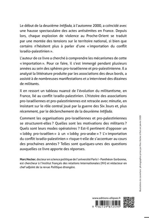 Comment les organisations pro-israéliennes et pro-palestiniennes se structurent-elles ? Quelles sont les motivations des militants ? Quels sont leurs modes opératoires ? Est-il pertinent d’opposer un « lobby pro-israélien » à un « lobby pro-arabe » ? L’« importation du conflit israélo-palestinien » risque-t-elle de s’accentuer au cours des prochaines années ? Telles sont quelques-unes des questions auxquelles ce livre apporte des réponses.