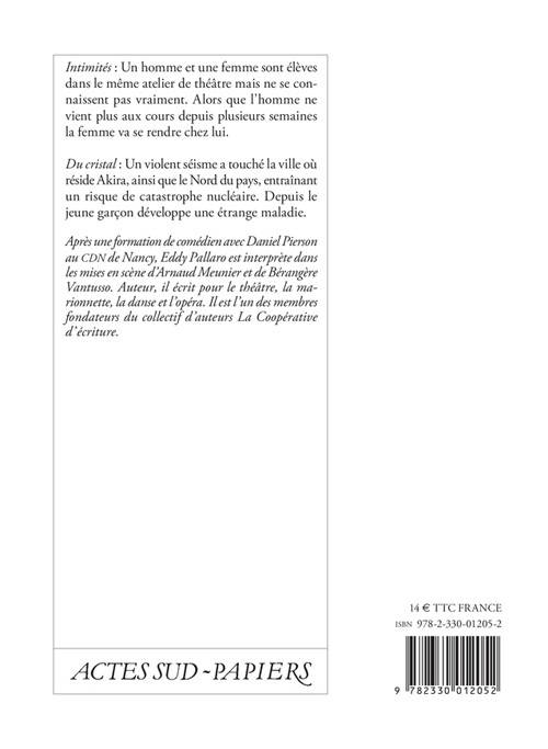 «Après une formation de comédien avec Daniel Pierson au CDN de Nancy, Eddy Pallaro est interprète dans les mises en scène d'Arnaud Meunier et de Bérangère Vantusso. Auteur, il écrit pour le théâtre, la marionnette, la danse et l'opéra. Il est l'un des membres fondateurs du collectif d'auteur La Coopérative d'écriture.»