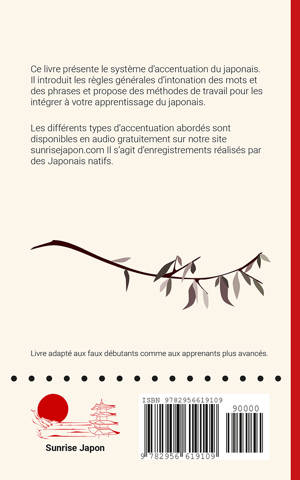 Introduction à l’intonation japonaise est un manuel pour apprendre à améliorer votre prononciation du japonais. Vous trouverez dans cet ouvrage une méthode simple à appliquer pour développer efficacement votre expression en rapprochant votre accent de celui d'un Japonais natif. Le fonctionnement des verbes, des noms, adverbes et adjectifs y est décortiqué avec 351 mots dont la prononciation est illustrée avec des schémas simples pour visualiser au mieux leurs motifs sonores. Ce livre vous sera utile si vous cherchez activement à améliorer votre japonais ainsi que la fluidité de votre expression à l'oral. Les mots abordés sont traités dans le livre en hiraganas afin de pouvoir placer visuellement les variations de tons. Les traductions en français et écritures en kanjis sont disponibles en fin d'ouvrage. Livre adapté aux faux débutants comme aux apprenants avancés.