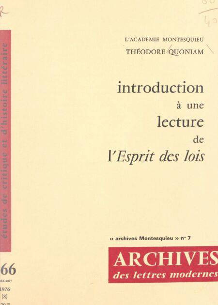 Introduction à une lecture de l'esprit des lois E-BOOK