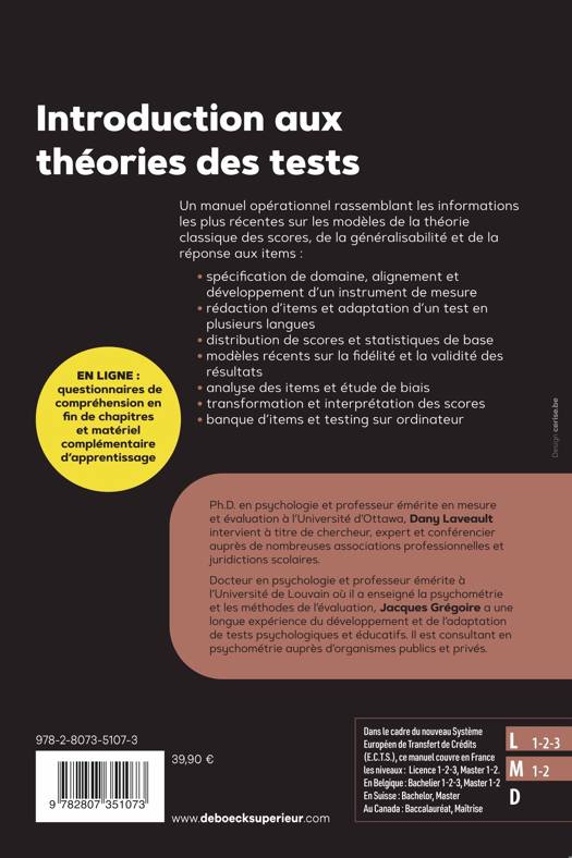 Un manuel opérationnel rassemblant les informations les plus récentes sur les modèles de la théorie classique des scores, de la généralisabilité et de la réponse aux items :
