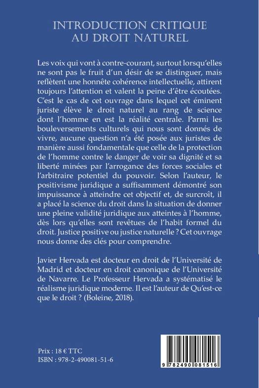 Les voix qui vont à contre-courant, surtout lorsqu'elles ne sont pas le fruit d'un désir de se distinguer, mais reflètent une honnête cohérence intellectuelle, attirent toujours l'attention et valent la peine d'être écoutées. C'est le cas de cet ouvrage dans lequel cet éminent juriste élève le droit naturel au rang de science dont l'homme en est la réalité centrale. Parmi les bouleversements culturels qui nous sont donnés de vivre, aucune question n'a été posée aux juristes de manière aussi fondamentale que celle de la protection de l'homme contre le danger de voir sa dignité et sa liberté minées par l'arrogance des forces sociales et l'arbitraire potentiel du pouvoir. Selon l'auteur, le positivisme juridique a suffisamment démontré son impuissance à atteindre cet objectif et, de surcroît, il a placé la science du droit dans la situation de donner une pleine validité juridique aux atteintes à l'homme, dès lors qu'elles sont revêtues de l'habit formel du droit. Justice positive ou justice naturelle ? Cet ouvrage nous donne des clés pour comprendre.
