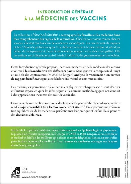 Cette Introduction générale propose une vision modernisée de la médecine des vaccins et œuvre à la réconciliation des différents partis. Sans ignorer la complexité du sujet et au-delà des controverses, Michel de Lorgeril analyse la vaccination en termes de rapport bénéfice/risque, aux échelons individuel et communautaire. Les techniques permettant d’évaluer scientifiquement chaque vaccin sont décrites et l’auteur expose en quoi les idées reçues et les erreurs méthodologiques ont conduit à des appréciations inexactes des réalités vaccinales. Comme seule une explication simple des faits établis peut rétablir la confiance, ce livre rend le sujet accessible à tout lecteur concerné et attentif. En apportant une information équilibrée il aide les médecins à perfectionner leur pratique et les familles à prendre des décisions éclairées. La collection Vaccins et société accompagne les familles et les médecins dans leur compréhension des enjeux de la vaccination. Chez les nourrissons comme chez les seniors, elle doit être basée sur des évidences scientifiques. Les vaccins sont-ils toujours utiles ? Sont-ils parfois toxiques ? La défiance relative à la vaccination est née d’un défaut de transparence et d’une désinformation auxquels cette série vient palier. Elle revendique son indépendance vis-à-vis de l’industrie, des gouvernements et des lobbies.