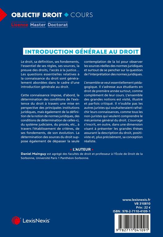 Cette introduction générale au droit aborde la définition du droit, ses fondements, l'essentiel de ses règles et ses sources, la preuve des droits et l'accès à la justice. L'ensemble est pédagogique, à travers des définitions, des exemples et des documents.
