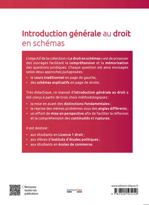L'objectif de la collection « Le droit en schémas » est de proposer des ouvrages facilitant la compréhension et la mémorisation des questions juridiques. Chaque question est ainsi envisagée selon deux approches juxtaposées :