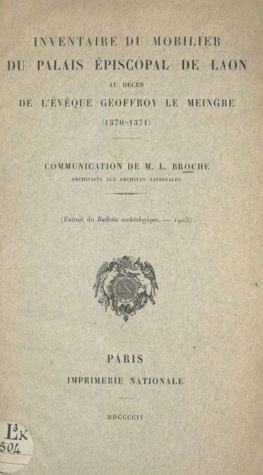 3. Inventaire du mobilier du Palais épiscopal de Laon au décès de l'évêque Geoffroy Le Meingre (1370-1371)