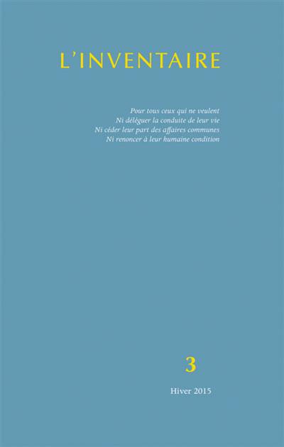 Sommaire du n°3 Gravir les échelons par Antoine Espaza L'Histoire des utopies par Annie Gouilleux Ski par Nicolas Gey Nous faire mondes face à l'hydre du capitalisme criminel par Jérôme Baschet L'indispensable alliage par Matthieu Amiech