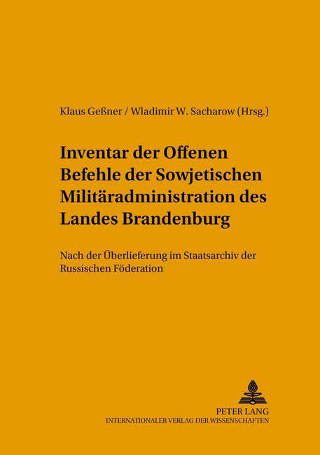 Die Publikation ist ein Gemeinschaftsprojekt des Lehrstuhls Geschichte der Militäruniversität des Verteidigungsministeriums der Russischen Föderation (Moskau), des Zentrums für Zeitgeschichte von Bildung und Wissenschaft der Universität Hannover und des Brandenburgischen Landeshauptarchivs (Potsdam). Erstmals wird hier ein Überblick über die im Staatsarchiv der Russischen Föderation in Moskau vorhandene Offene Serie der Befehle der Sowjetischen Militäradministration des Landes Brandenburg - SMAB - gegeben. Einleitend erfolgen quellenkritische und institutionsgeschichtliche Untersuchungen zur Thematik. Den Hauptteil bildet das Inventar der von der Verwaltung der SMAB zwischen 1945 und 1949 erlassenen Offenen Befehle. Auf Interesse dürfte ebenfalls die Übersicht über die von der SMAB erlassenen «Anweisungen» stoßen.