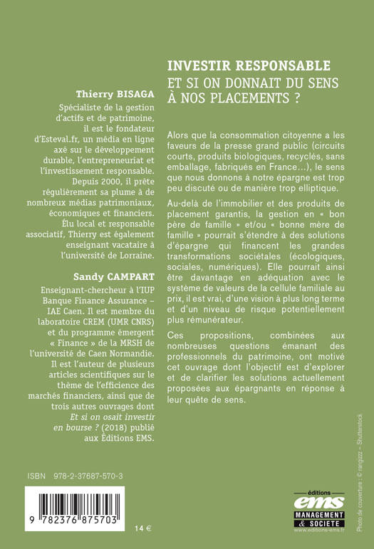 Ces propositions, combinées aux nombreuses questions émanant des professionnels du patrimoine, ont motivé cet ouvrage dont l'objectif est d'explorer et de clarifier les solutions actuellement proposées aux épargnants en réponse à leur quête de sens.
