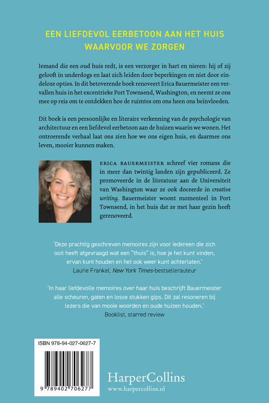 Iemand die een oud huis redt, is een verzorger in hart en nieren: hij of zij gelooft in underdogs en laat zich leiden door beperkingen in plaats van eindeloze opties. In dit betoverende boek renoveert Erica Bauermeister een vervallen huis in het excentrieke Port Townsend, Washington, en neemt ze ons mee op reis om te ontdekken hoe de ruimtes om ons heen ons beïnvloeden.