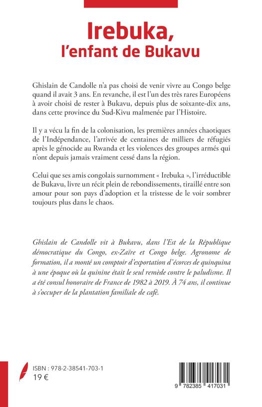Ghislain de Candolle n’a pas choisi de venir vivre au Congo belge quand il avait 3 ans. En revanche, il est l’un des très rares Européens à avoir choisi de rester à Bukavu, depuis plus de soixante-dix ans, dans cette province du Sud-Kivu malmenée par l’Histoire. Il y a vécu la fin de la colonisation, les premières années chaotiques de l’Indépendance, l’arrivée de centaines de milliers de réfugiés après le génocide au Rwanda et les violences des groupes armés qui n’ont depuis jamais vraiment cessé dans la région. Celui que ses amis congolais surnomment « Irebuka », l’irréductible de Bukavu, livre un récit plein de rebondissements, tiraillé entre son amour pour son pays d’adoption et la tristesse de le voir sombrer toujours plus dans le chaos.
