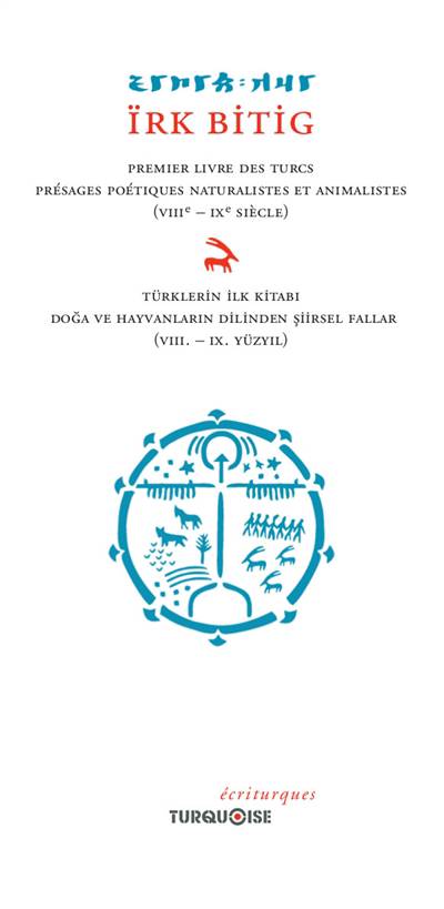 Résumé en français : Le livre de présages "Ïrk Bitig", présenté dans ces pages, découvert en 1907 par l’archéologue britannique sir Aurel Stein dans une grotte au Turkestan oriental (Chine) et conservé actuellement à la British Library, est le tout premier livre de papier rédigé en langue turque qui soit parvenu jusqu’à nos jours. Rédigé entre le VIIIe et le IXe siècle en alphabet göktürk (des « Turcs célestes »), il constitue une source majeure pour toute personne qui s’intéresse à la période du chamanisme turc. Œuvre littéraire et poétique, il réunit 65 présages évoquant un univers symbolique où s’animent de concert la nature, les animaux et les hommes. Loin des représentations actuelles stéréotypées de cette période, "Ïrk Bitig" est riche d’enseignements linguistiques et philosophiques liés aux croyances turques anciennes, bien antérieures à l’apparition de l’islam. La présente édition est née du projet de révéler pour la première fois, en sus du texte original reproduit dans son intégralité en fac-similé, sa translittération et sa transcription en alphabet latin ainsi qu’une traduction en turc moderne et en français.