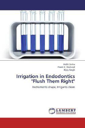 There is a famous saying in endodontics "It does not matter what you put in, it is more important what you take out" (from root canals).Irrigants per se and irrigation systems play a key role in disinfecting and debriding root canal system.It is truly said , Instruments shape, irrigants clean. Every root canal system has spaces that cannot be cleaned mechanically. Mechanical part of disinfection is done by instruments but microorganisms located in isthmuses, deltas, irregularities, and dentinal tubules can not be eliminated by mechanical means alone. Irrigation also serves to lubricate the canal,dissolves pulp tissue remenants,removes smear layer and also has antimicrobial action.The technique used should be both effective and safe at the same time. This book gives an insight into the method and instruments of irrigation, various properties of each irrigant solution, mode of action of irrigation solution, selection of irrigant solution, problem in irrigation and new modalities of irrigation.