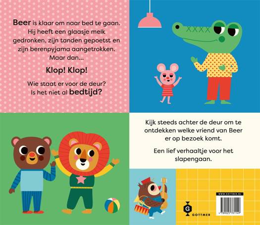 Beer is bijna klaar om naar bed te gaan: hij heeft lekker gegeten, zijn tanden gepoetst en zijn berenpyjama aangetrokken. Maar dan... Klop, klop! Wie klopt daar nu aan de deur? Het is Muis, en die heeft berenhonger. Even later komt Krokodil langs met een kapotte tandenborstel en Leeuws pyjama blijkt veel te klein! Alsof dat nog niet genoeg is, begint een klaarwakkere Uil ineens luid op haar trompet te spelen. Zal iedereen uiteindelijk toch nog lekker in slaap vallen?