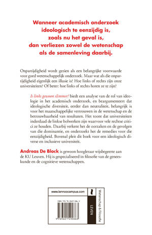 Is links gewoon slimmer? biedt een analyse van de rol van ideologie in het academisch onderzoek, en beargumenteert dat ideologische diversiteit, eerder dan neutraliteit, belangrijk is voor het maatschappelijke vertrouwen in de wetenschap en de betrouwbaarheid van resultaten. Het toont dat universiteiten inderdaad de linkse bolwerken zijn waarvoor vele rechtse critici ze houden. Daarbij verkent het de oorzaken en de gevolgen van die dominantie, en onderzoekt het de remedies voor die eenzijdigheid.