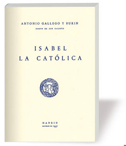 En la navidad de 1957 -hace ahora cincuenta años- publicó Antonio Gallego Burin su última obra escrita cuatro años antes de su muerte, en Madrid el 13 de enero de 1961. Libro breve y enjundioso, redactado en momentos en los que se agitaban las aguas, las del Nuevo Mundo de Colón cuyas velas impulsa, desde Santafe -las múltiples Santafes americanas- la reina Isabel en momentos en los que se habla de su posible beatificación. Esta es una edición privada -de ahí el primordial interés- edición no venal y circulada exclusivamente a los amigos de Gallego Burin en Madrid. Con la reedición de este libro se completa la edición, tras la muerte del autor, del total de su producción; algunas obras como la Guía de Granada, José de Mora, La Capilla Real de Granada, Los moriscos del Reino de Granada, etc...Contiene 34 fotografías en blanco y negro.