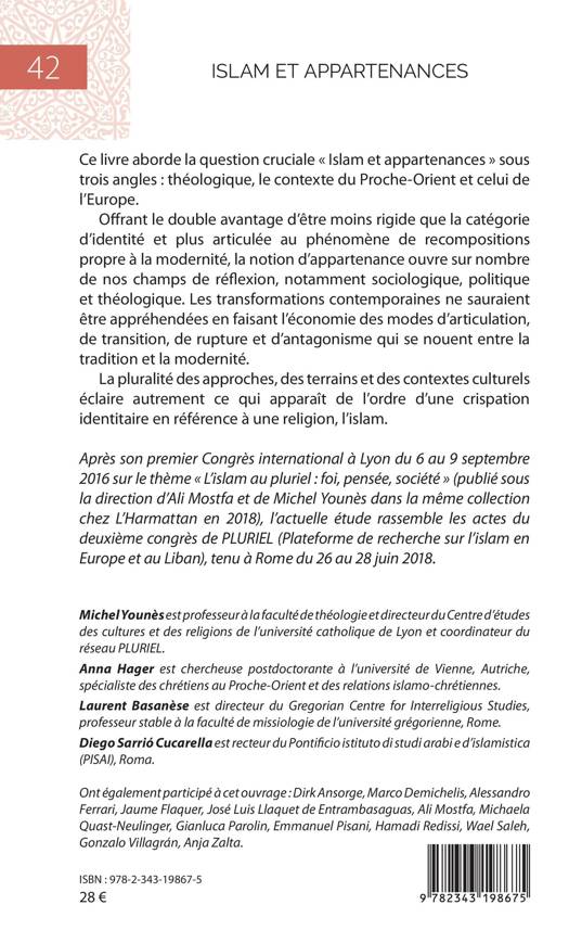 Ce livre aborde la question cruciale « Islam et appartenances » sous trois angles : théologique, le contexte du Proche-Orient et celui de l'Europe. Offrant le double avantage d'être moins rigide que la catégorie d'identité et plus articulée au phénomène de recompositions propre à la modernité, la notion d'appartenance ouvre sur nombre de champs de réflexion, notamment sociologique, politique et théologique. Les transformations contemporaines ne sauraient être appréhendées en faisant l'économie des modes d'articulation, de transition, de rupture et d'antagonisme qui se nouent entre la tradition et la modernité. La pluralité des approches, des terrains et des contextes culturels éclaire autrement ce qui apparaît de l'ordre d'une crispation identitaire en référence à une religion, l'islam.