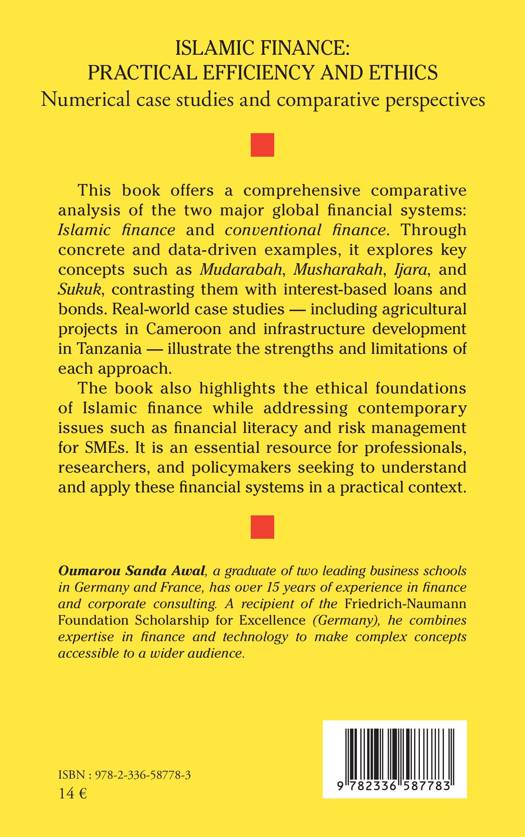 This book offers a comprehensive comparative analysis of the two major global financial systems : Islamic finance and conventional finance. Through concrete and data-driven examples, it explores key concepts such as Mudarabah, Musharakah, Ijara, and Sukuk, contrasting them with interest-based loans and bonds. Real-world case studies - including agricultural projects in Cameroon and infrastructure development in Tanzania - illustrate the strengths and limitations of each approach.