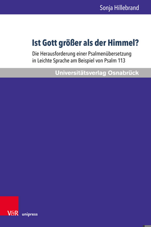 Easy language has become indispensable in the public sphere. Churches are also increasingly offering information and religious texts in easy language to enable people with disabilities or little knowledge of German to participate. However, translating Bible texts poses a particular challenge. The Psalms in particular, which attract attention with their highly figurative and poetic language, have features that at first glance contradict all the requirements of easy language. Sonja Hillebrand presents a way out of the dilemma between the demands of psalm poetry and the requirements of easy language. Using the transcreation method, psalms can be translated into easy language in a linguistically sound and theologically reflective way.