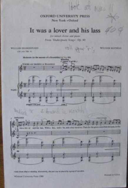 for SATB and pianoFrom Shakespeare Songs.