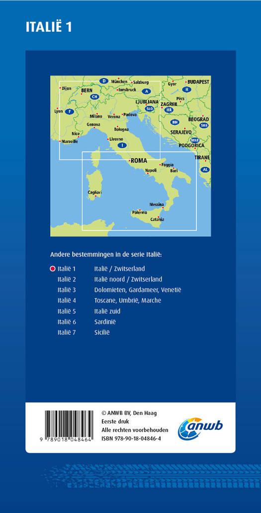 Met de gedetailleerde en nauwkeurige ANWB Wegenkaart Italië 1. Italië, Zwitserland ga je goed voorbereid op autovakantie. Schaal van 1:1.000.000 (1 cm = 10 km).