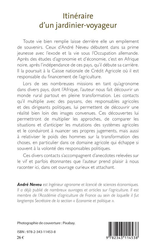 André Neveu partage ici ses souvenirs collectés lors de nombreuses missions en tant qu'agronome dans divers pays, notamment africains, et nous fait découvrir un monde rural en pleine transformation partout. Les contacts qu'il multiplie avec des paysans, des responsables agricoles et des dirigeants politiques lui font découvrir une réalité loin des images convenues. Ces découvertes lui permettront de multiplier les approches, de comparer les situations et d'anticiper les mutations des systèmes agricoles.