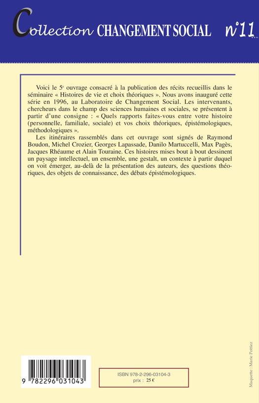 Les itinéraires rassemblés dans cet ouvrage, ces "histoires" mises bout à bout, dessinent un paysage intellectuel, une gestalt, un contexte à partir duquel on voit émerger, au-delà de la présentation des auteurs, des questions théoriques, des objets de connaissance, des débats épistémologiques.