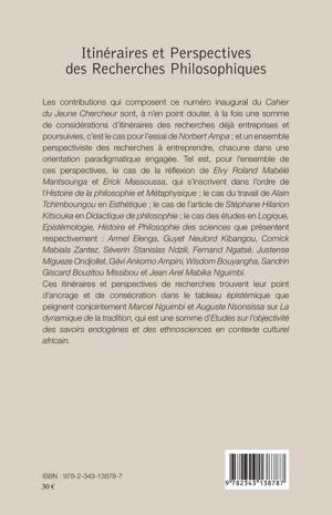 Les contributions qui composent ce numéro inaugural du Cahier du jeune chercheur sont à la fois une somme de considérations d'itinéraires des recherches déjà entreprises et poursuivies et un ensemble perspectiviste des recherches à entreprendre, chacune dans une orientation paradigmatique engagée. Ils trouvent leur point d'ancrage et de consécration dans le tableau épistémique que peignent Marcel Nguimi et Auguste Nsonsissa sur la « dynamique de la tradition », qui est une somme d'étude sur l'objectivité des savoirs endogènes et des ethnosciences en contexte culturel africain.