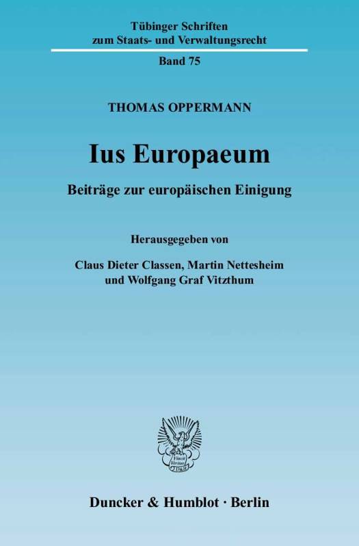 Seit dem Studium in den funfziger Jahren galt dem Europarecht das besondere Interesse von Professor Dr. Dr. h. c. mult. Thomas Oppermann. Als junger Beamter im Bundeswirtschaftsministerium Anfang der sechziger Jahre und spater als Professor in Tubingen hat er die Entwicklung der europaischen Integration und ihres Rechts aktiv begleitet. Zuletzt wirkte er vor allem als Berater von Ministerprasident Teufel in dessen Eigenschaft als Mitglied des Europaischen Verfassungskonvents. Aus Anlass des 75. Geburtstages von Thomas Oppermann erscheinen nun seine nach wie vor wichtigen europarechtlichen Schriften. Sie dokumentieren den Verlauf der Integration Europas aus nachster Nahe ebenso wie ein wissenschaftliches Werk, das sich nicht in dogmatischen Glasperlenspielen ergeht, sondern vom Zugriff auf praktische, weiterfuhrende Probleme gepragt ist. In vielen Beitragen wird ein besonders herausragender Wesenszug der Arbeit von Thomas Oppermann deutlich: die Rolle der Menschen zu erfassen und zu wurdigen, die den europaischen Einigungsprozess vorangebracht haben. Auch die Beitrage zum Verfassungsvertrag gewinnen so eine besondere Lebendigkeit. Zugleich dokumentiert die Sammlung die breiten Interessen von Thomas Oppermann und seine Fahigkeit, auch groae Entwicklungs- und Verbindungslinien zu ziehen. Dies belegen die Bezuge, die verschiedene Beitrage zum Verfassungsrecht, zum Volkerrecht und zum Kulturrecht aufweisen. So entsteht ein umfassendes Bild der wissenschaftlichen Leistungen von Thomas Oppermann.