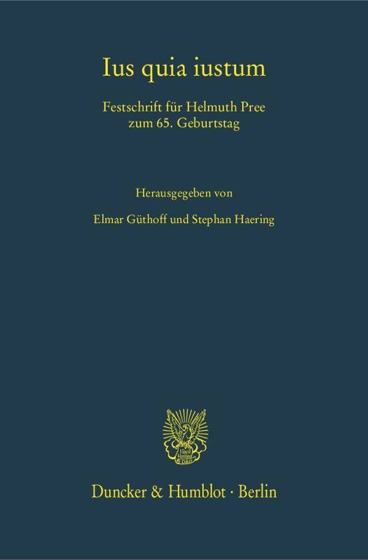 »Ius quia iustum. Festschrift for Helmuth Pree on Occasion of his 65th Birthday«