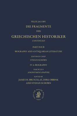 This volume is part of the continuation of Felix Jacoby's monumental collection of fragmentary Greek historiography. It contains new critical editions of the anonymous Greek papyri with biographical content with English translation and extensive commentaries. The papyri concern the lives of politicians, rhetoricians, kings, poets and philosophers. These texts show that there was a wider variety of forms of biographical writing in Greek antiquity than is attested by the preserved works and they contribute significantly to our knowledge of the development of this literary genre. The commentaries provide many new insights into the development of biographical traditions in antiquity.
