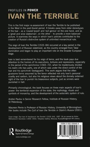 This is the first major re-assessment of Ivan the Terrible to be published in the West in the post-Soviet period. It breaks away from older stereotypes of the tsar - whether as 'crazed tyrant' and 'evil genius', on the one hand, or as a 'great and wise statesman', on the other - to provide a more balanced picture. It examines the ways in which Ivan's policies contributed to the creation of Russia's distinctive system of unlimited monarchical rule.